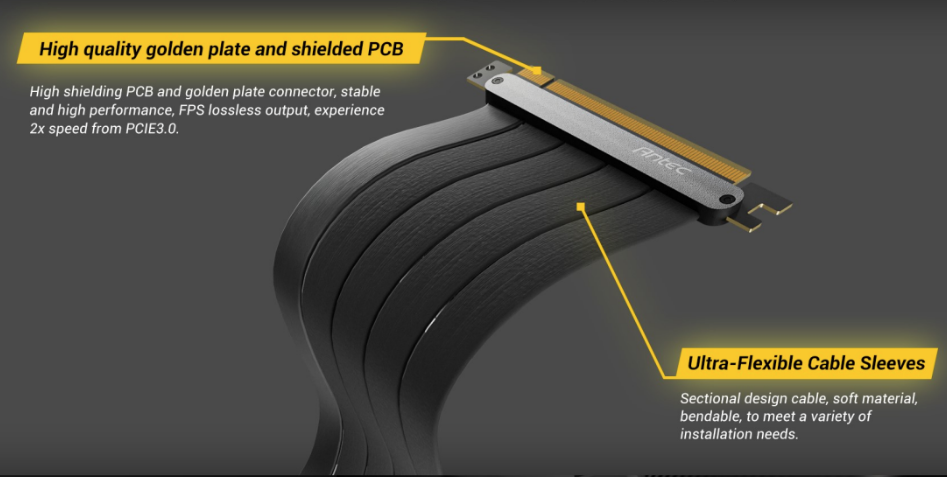 כבל ותושבת לכ. מסך Antec PCI-E 4.0 Riser Cable With Bracket Black