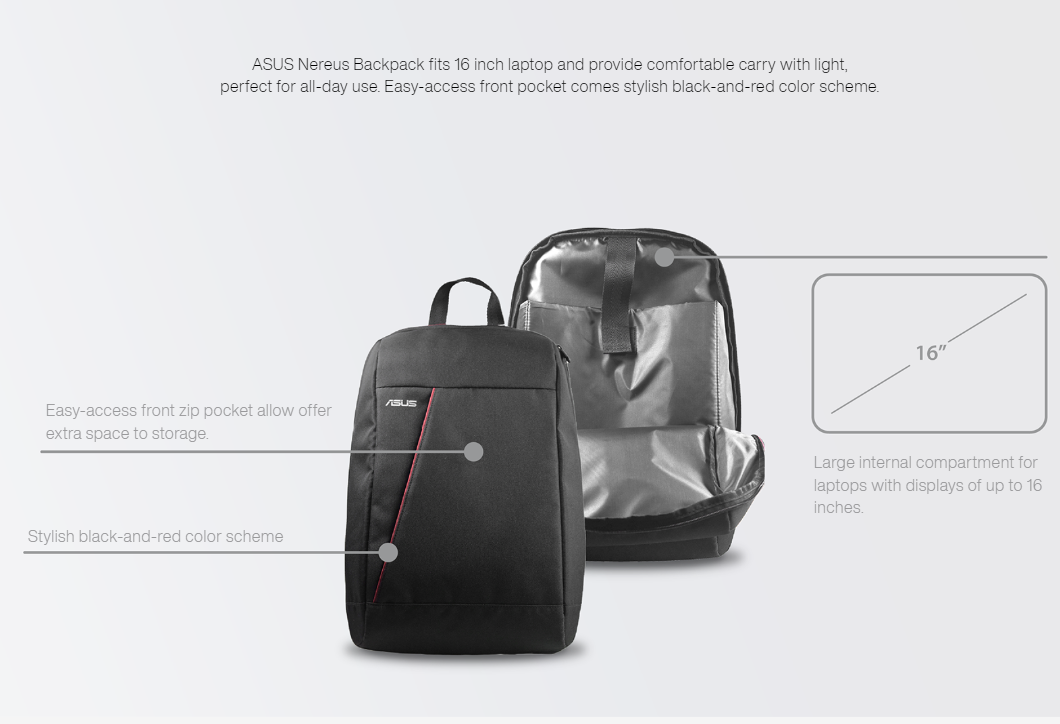 תיק גב ASUS Nereus Backpack Up to 16inch Laptop Stylish