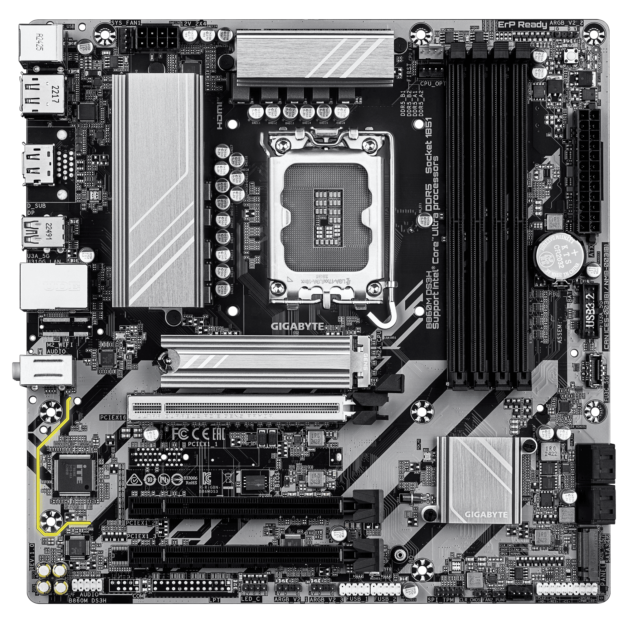 לוח אם GIGABYTE B860M DS3H 1.0 Micro-ATX DDR5 LGA1851 2.5GbE Lan