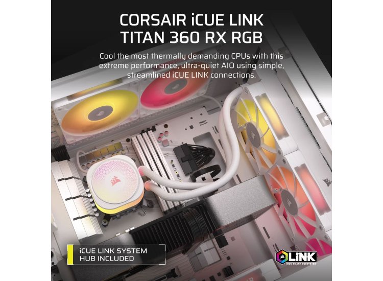 קירור נוזלי לבן Corsair iCUE TITAN 360 RX RGB White 360mm AIO