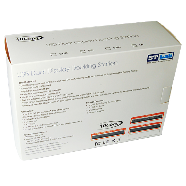 תחנת עגינה אוניברסלית ST-LAB U-2450 USB 10G DUAL Display DVI HDMI