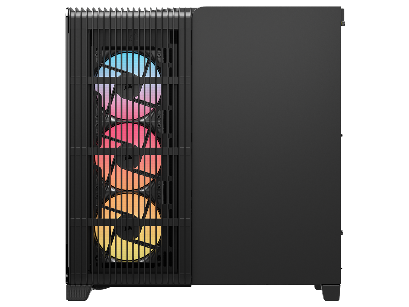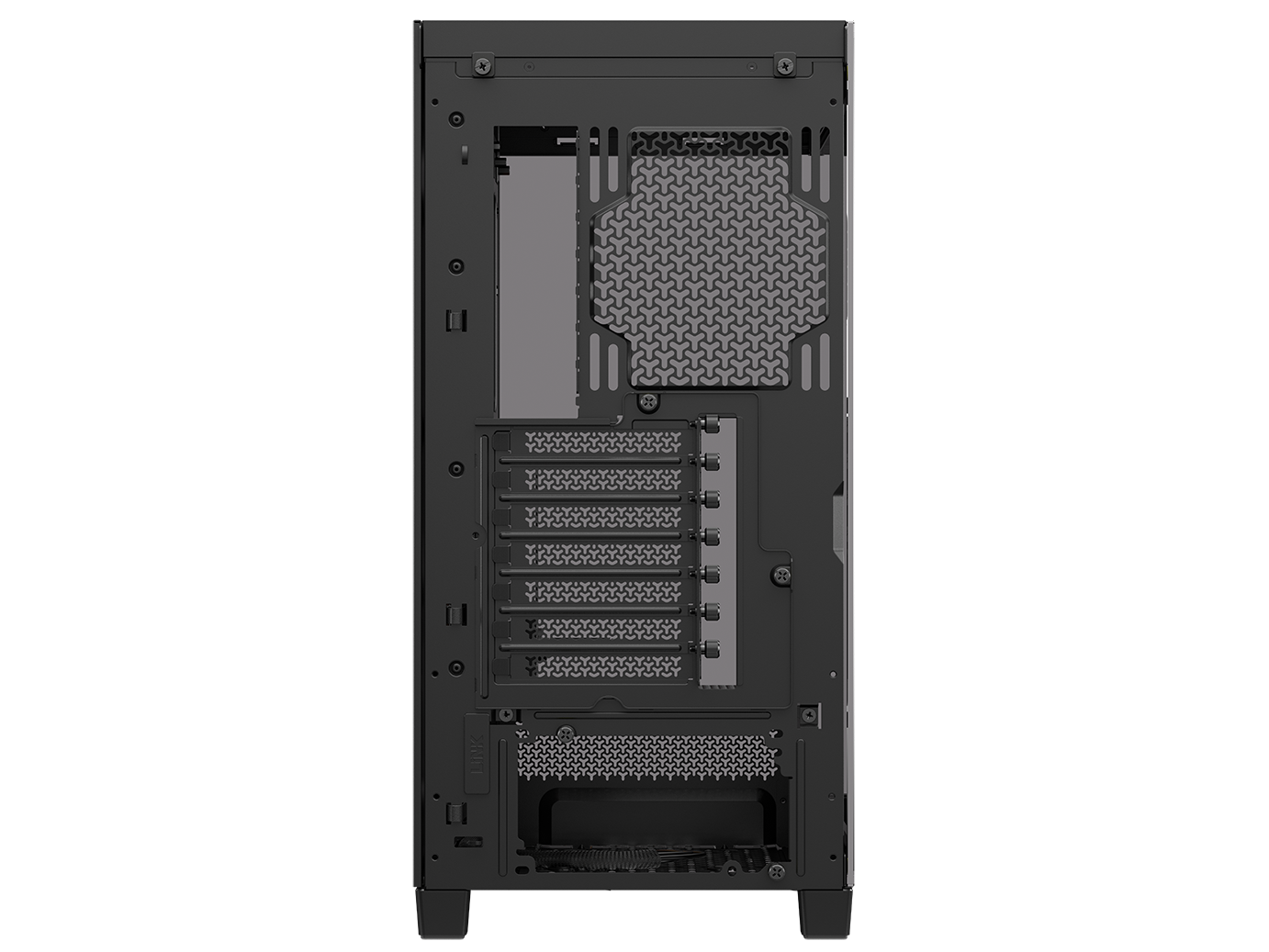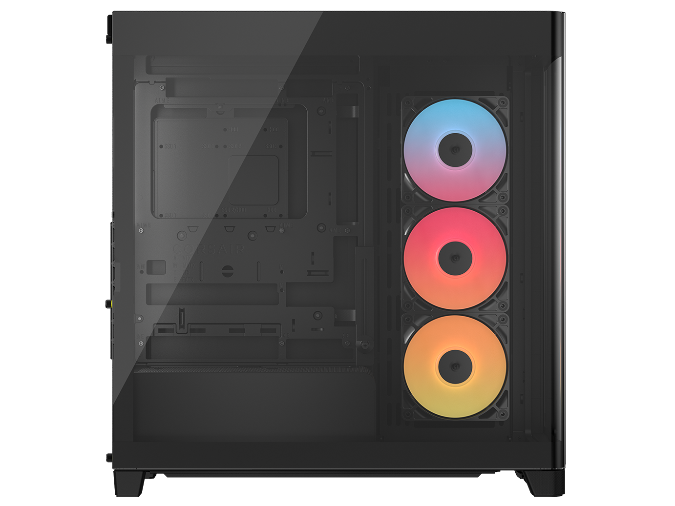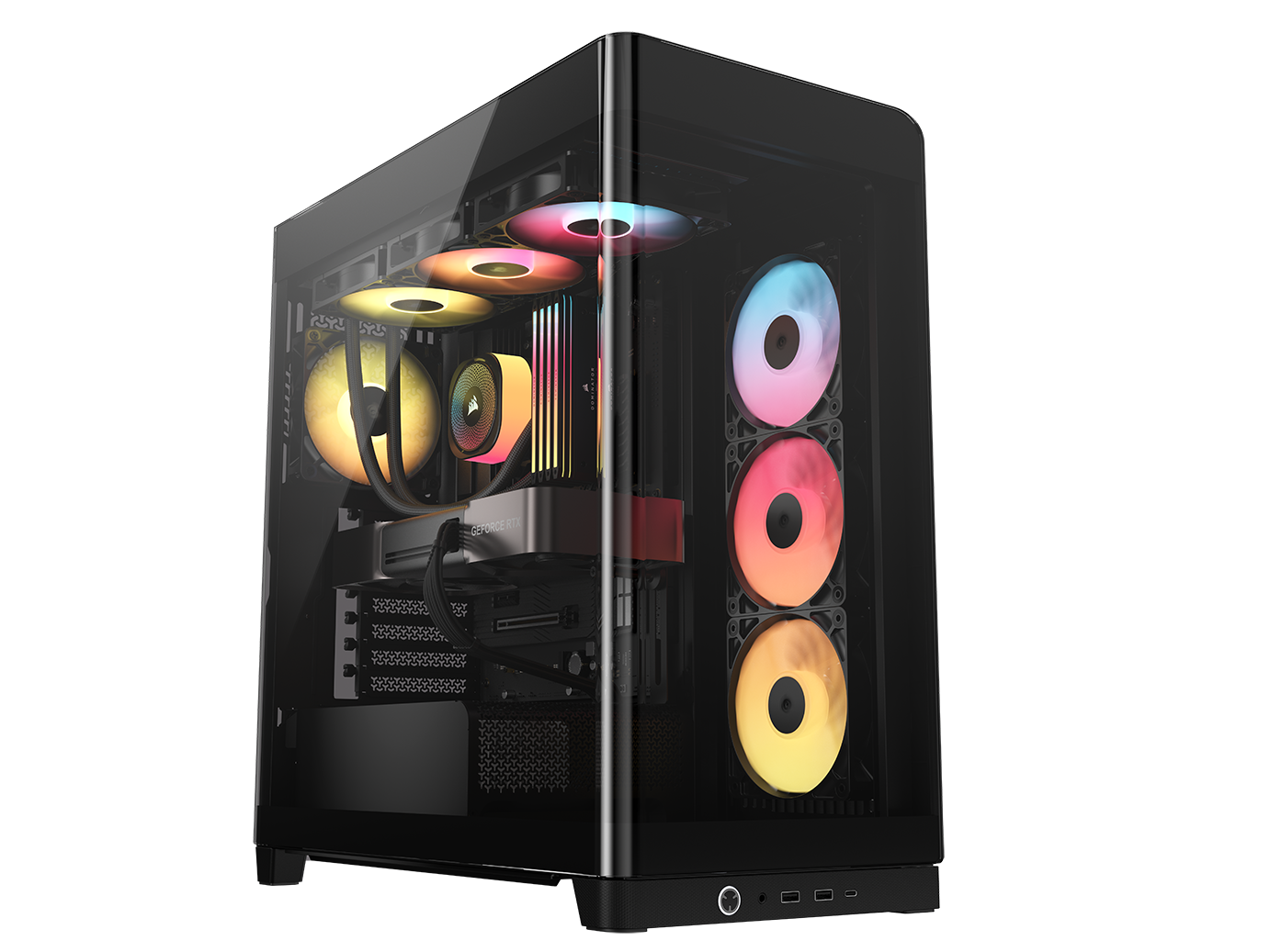 A single-piece wraparound glass panel combines with support for reverse-connector motherboards for flawless aesthetics,