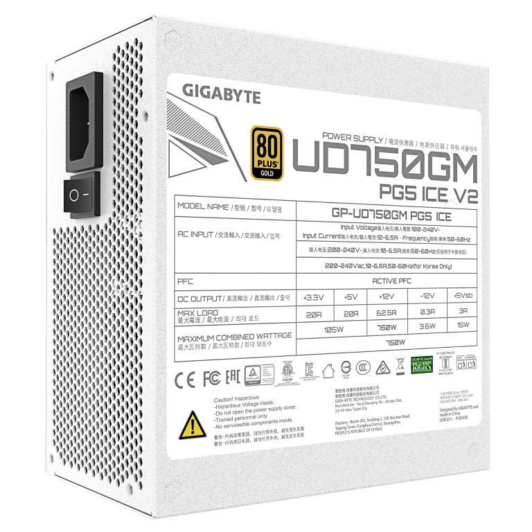 ספק Gigabyte UD750M PG5 V2 ICE 750W 80 Plus Gold ATX 3.1 PCIE 5.1