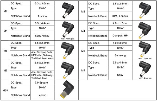 ■ DC Output: 15V/16V/18.5V/19V/19.5V/20V