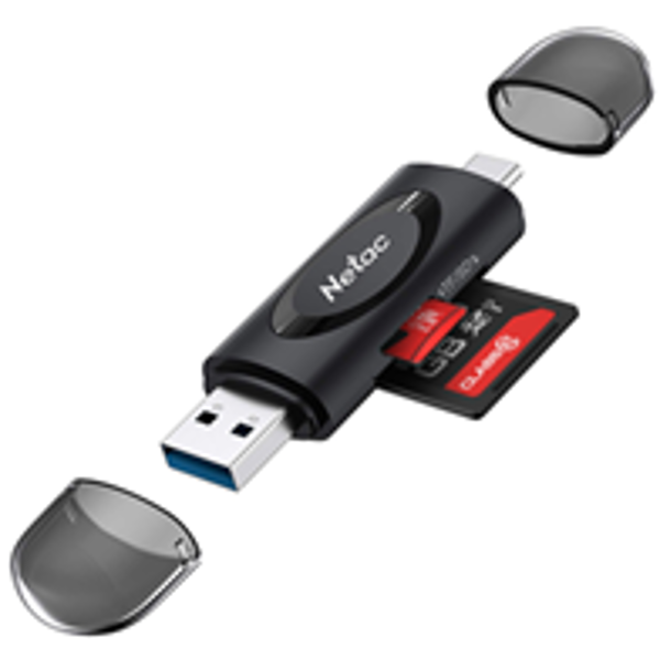 קורא כרטיסים Netac Card READER WK14 USB3.0+TYPE-C Msd/SD Black